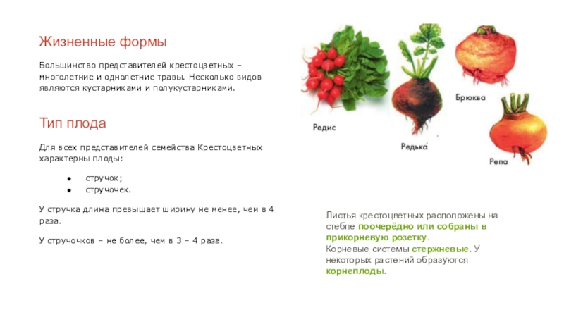 Корневые системы стержневые. У некоторых растений образуются корнеплоды.