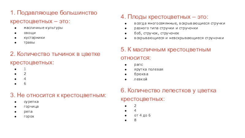 Для всех представителей семейства Крестоцветных характерны плоды: