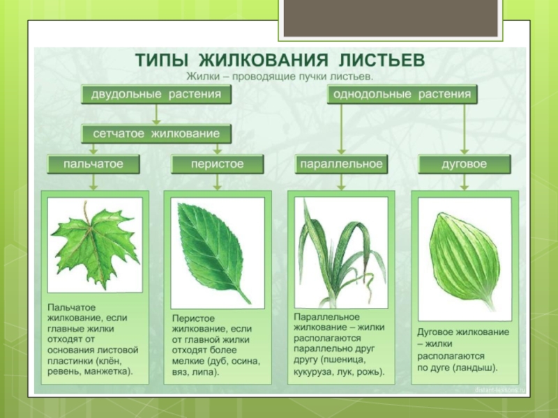 Рассмотрите предложенные гербарии растений или лист комнатного растения, определите тип листьев у каждого растения, результаты запишите в таблицу: