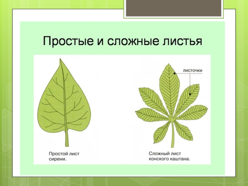 Зарисуйте в тетради 1 простой лист и 1 сложный лист, подпишите названия растений, которым принадлежат эти листья, части листа каждого растения.