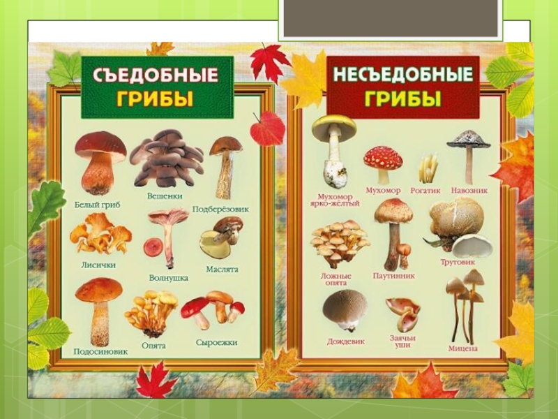Оборудование: муляжи «Съедобные и несъедобные грибы».
