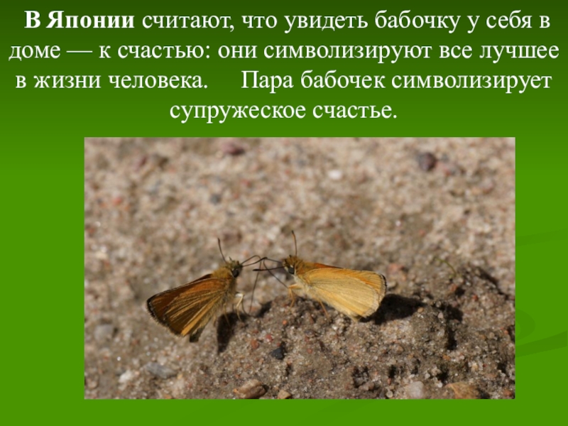 Слайд 7 В Японии считают, что увидеть бабочку у себя в доме —
