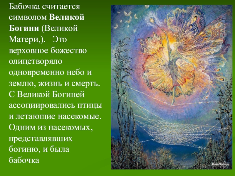 Слайд 6Бабочка считается символом Великой Богини (Великой Матери,). Это верховное божество