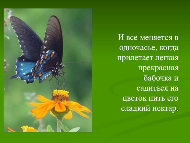 Слайд 14И все меняется в одночасье, когда прилетает легкая прекрасная бабочка и