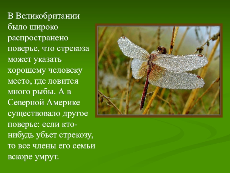 Слайд 23В Великобритании было широко распространено поверье, что стрекоза может указать хорошему
