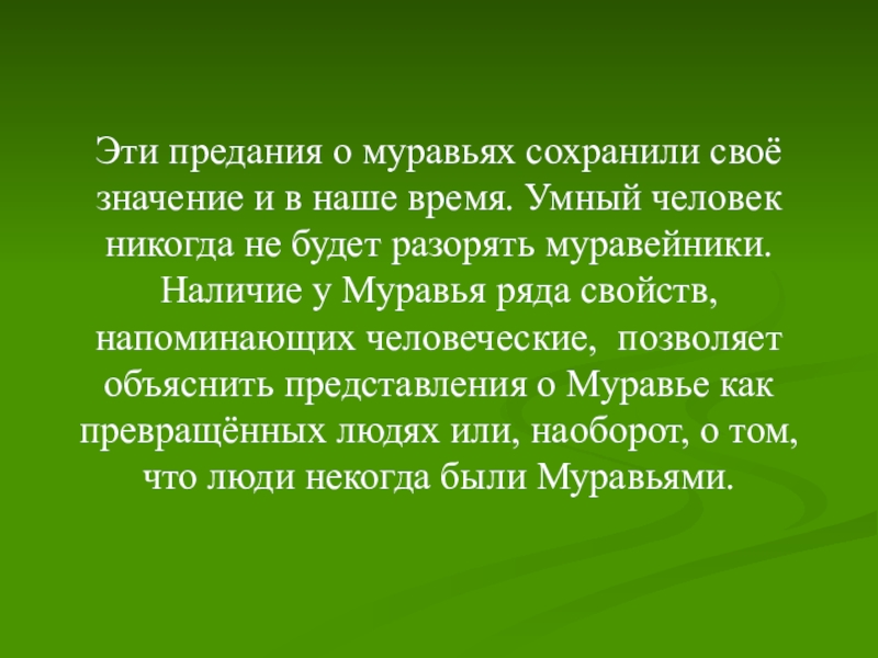 Слайд 21Эти предания о муравьях сохранили своё значение и в наше время.
