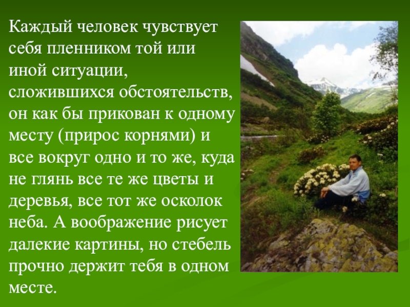 Слайд 13Каждый человек чувствует себя пленником той или иной ситуации, сложившихся обстоятельств,