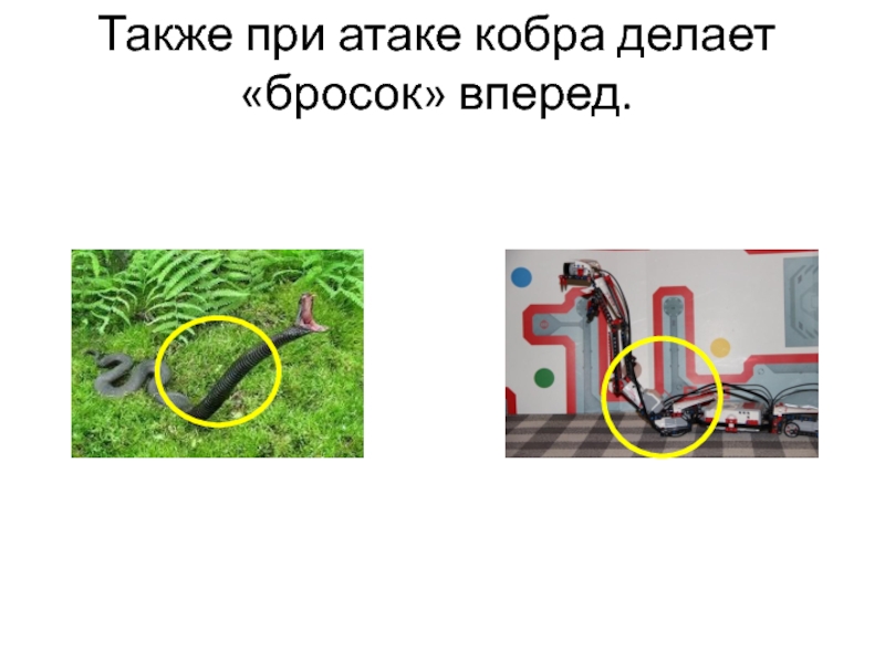 Слайд 8Также при атаке кобра делает «бросок» вперед.