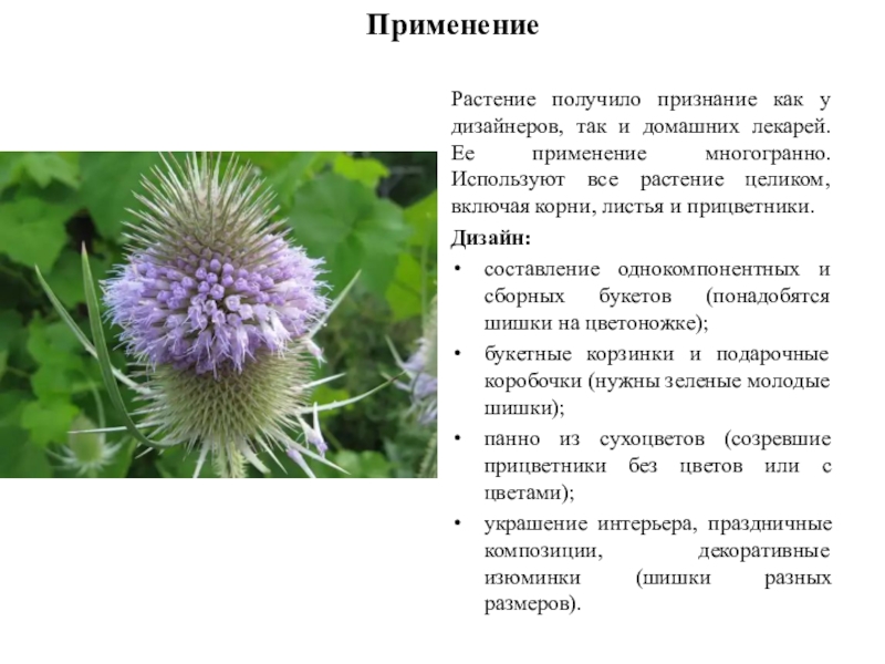 применение многогранно. Используют все растение целиком, включая корни, листья и прицветники.