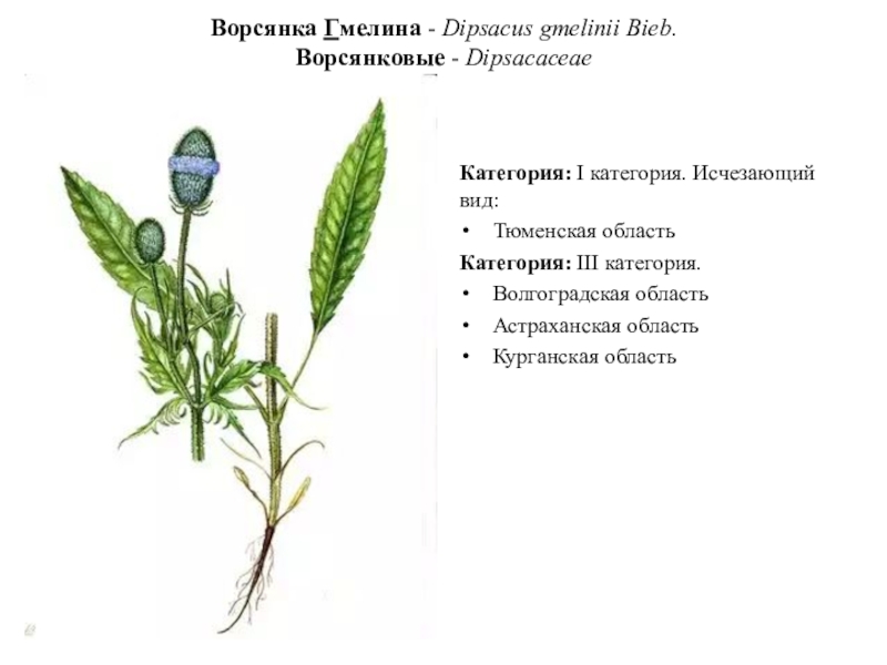 Слайд 2Ворсянка Гмелина - Dipsacus gmelinii Bieb.