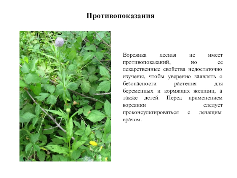 чтобы уверенно заявлять о безопасности растения для беременных и кормящих женщин, а также детей. Перед применением ворсянки следует проконсультироваться с лечащим врачом.