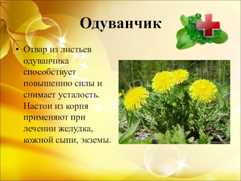Отвар из листьев одуванчика способствует повышению силы и снимает усталость. Настои