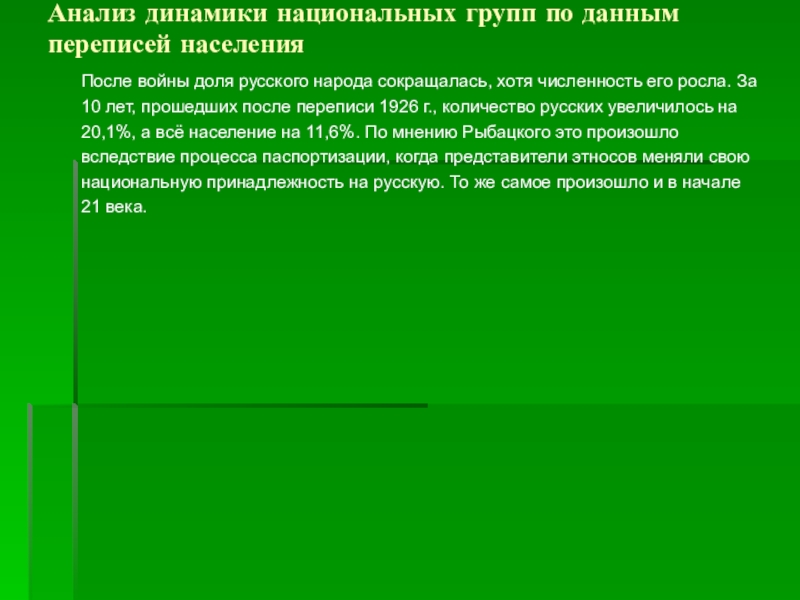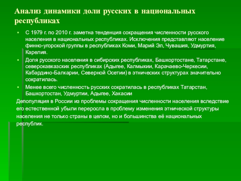 Слайд 12Анализ динамики доли русских в национальных республиках