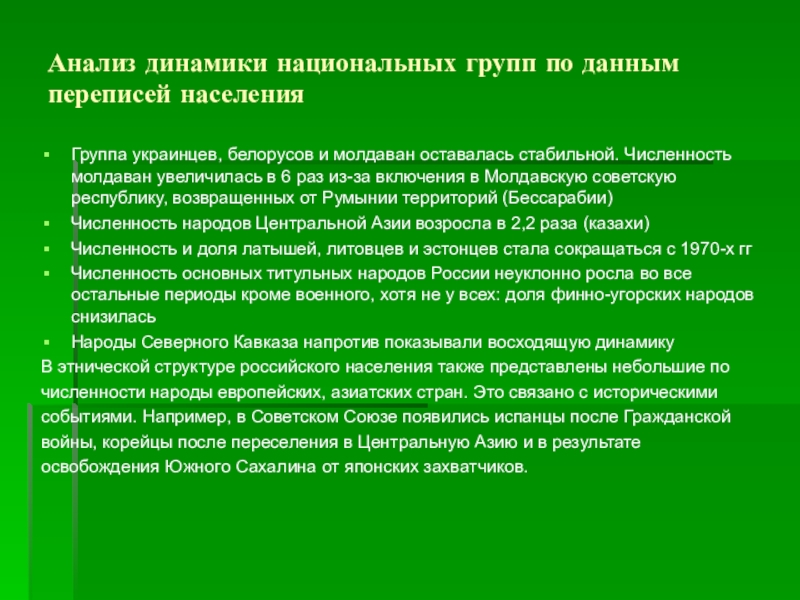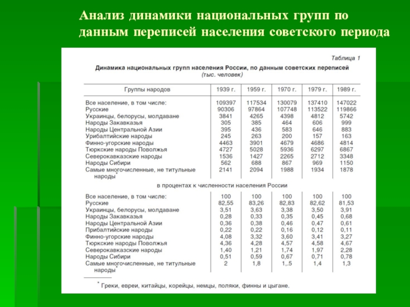 Слайд 4Анализ динамики национальных групп по данным переписей населения советского периода