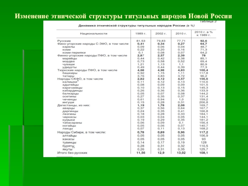 Слайд 9Изменение этнической структуры титульных народов Новой России