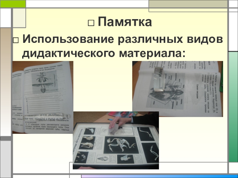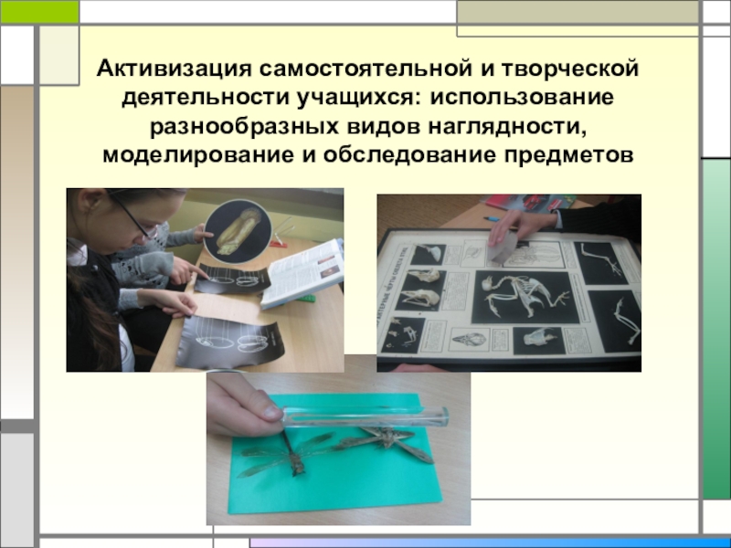 Слайд 12Активизация самостоятельной и творческой деятельности учащихся : использование натуральных объектов, объемных
