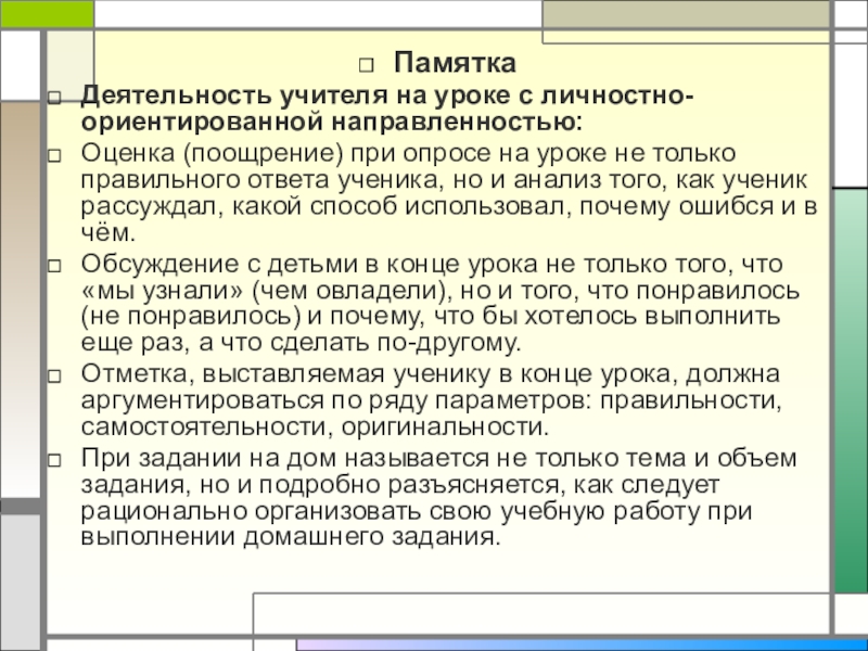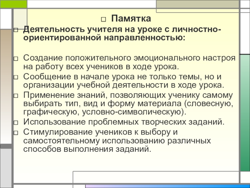 Деятельность учителя на уроке с личностно-ориентированной направленностью:
