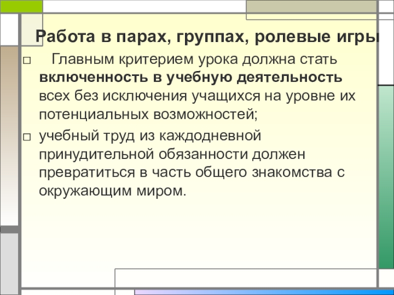 урока должна стать включенность в учебную деятельность всех без исключения учащихся на уровне их потенциальных возможностей;