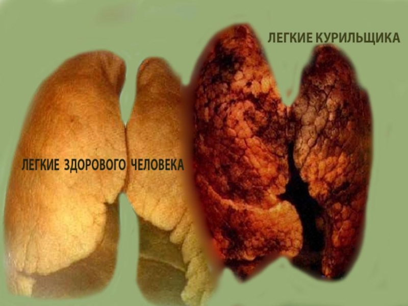 - Курение табака. Известно, что табачный дым содержит около 400 вредных для организма веществ. Это никотин, сажа, синильная кислота, угарный газ и.т.д.  При курении эти вещества оседают на оболочках легочных пузырьков, вызывая мучительный кашель. Легкие курильщика теряют эластичность, в результате чего уменьшается снабжение организма кислородом. Работоспособность и самочувствие ухудшаются.  Курящие люди чаще заболевают хроническими заболеваниями органов дыхания (бронхит), а также раком легких и астмой