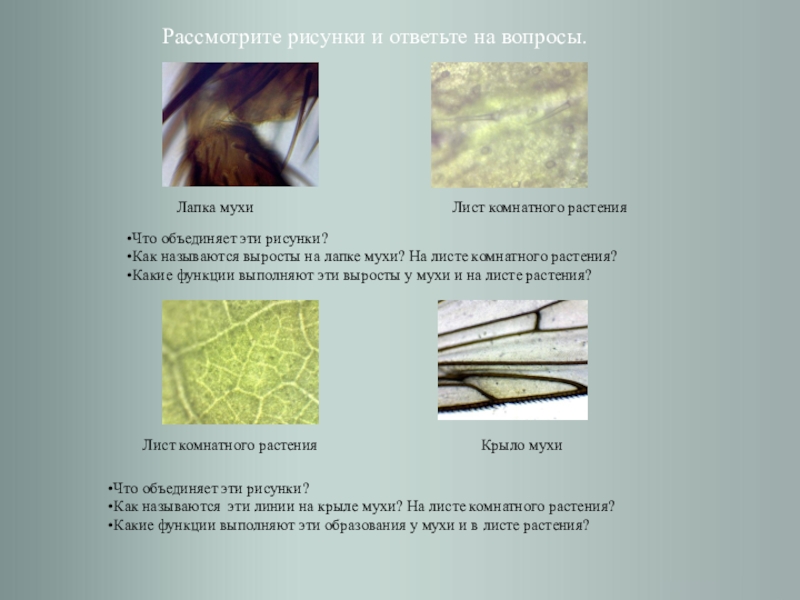 Какие функции выполняют эти образования у мухи и в листе растения?