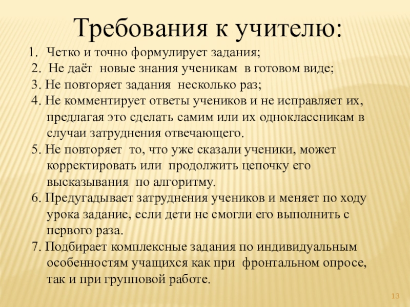 4. Не комментирует ответы учеников и не исправляет их, предлагая это сделать самим или их одноклассникам в случаи затруднения отвечающего.