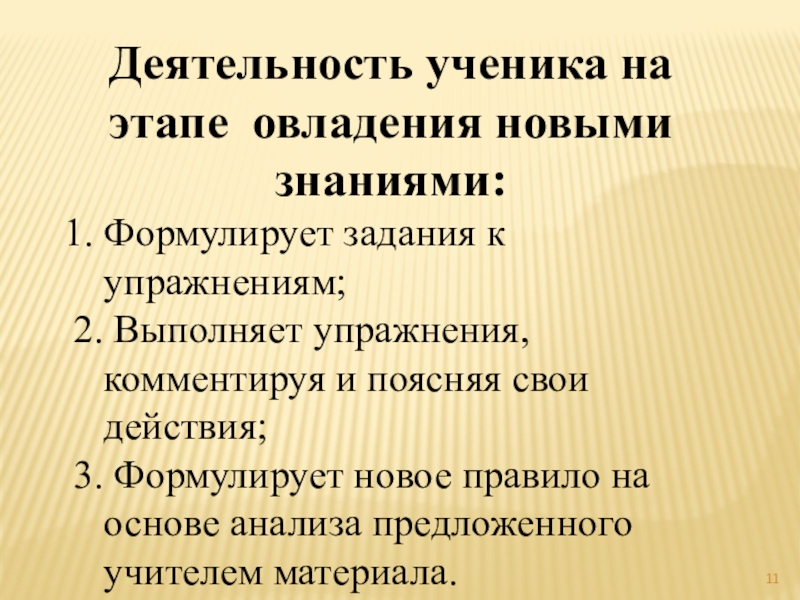Слайд 11Деятельность ученика на этапе овладения новыми знаниями: