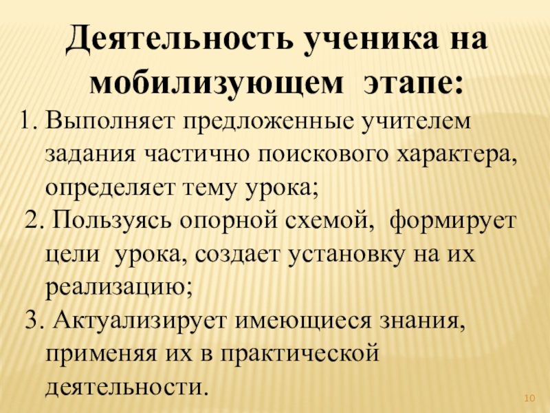 Слайд 10Деятельность ученика на мобилизующем этапе: