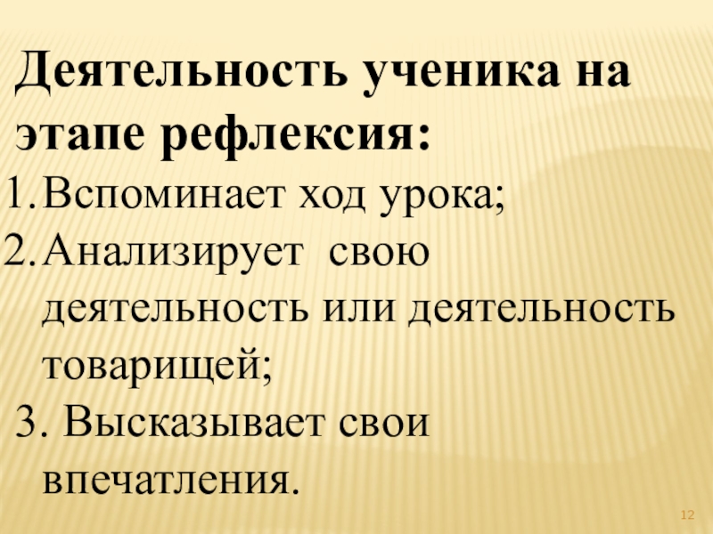Слайд 12Деятельность ученика на этапе рефлексия: