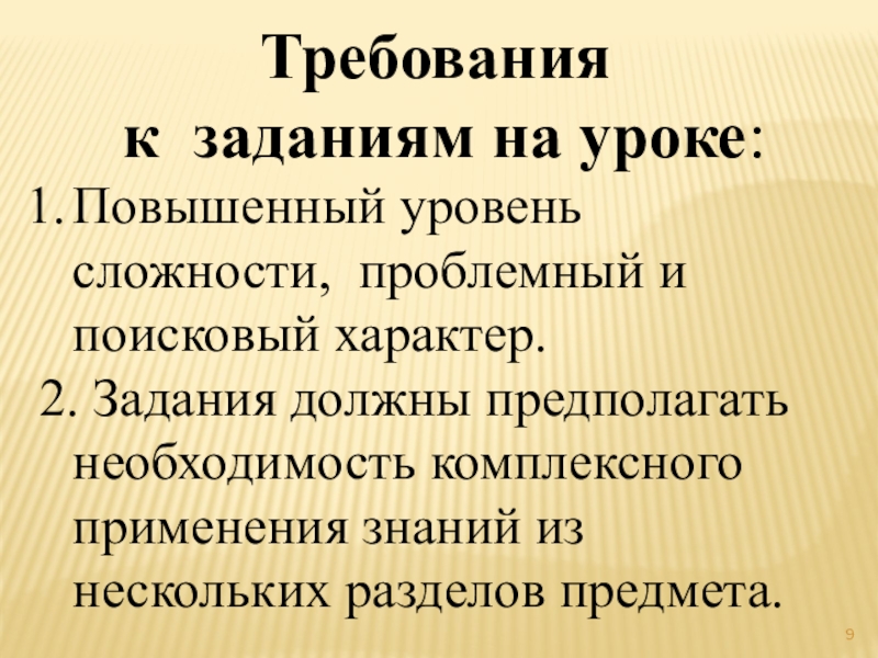 Задания должны предполагать необходимость комплексного применения знаний из нескольких разделов предмета.