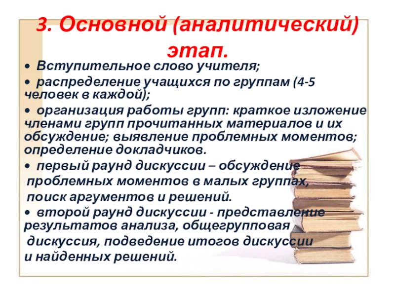 • организация работы групп: краткое изложение членами групп прочитанных материалов и их обсуждение; выявление проблемных моментов; определение докладчиков.