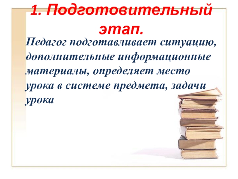 Педагог подготавливает ситуацию, дополнительные информационные материалы, определяет место