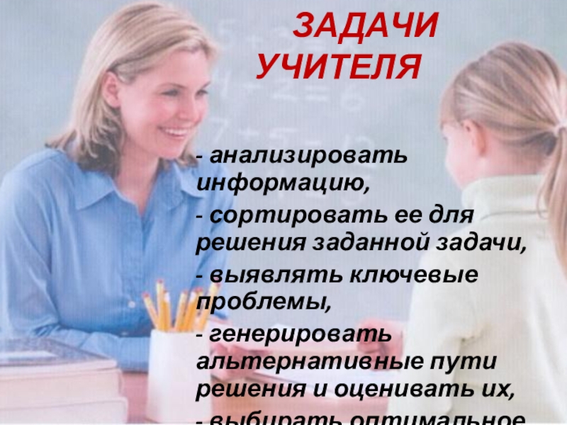 Слайд 6 ЗАДАЧИ УЧИТЕЛЯ