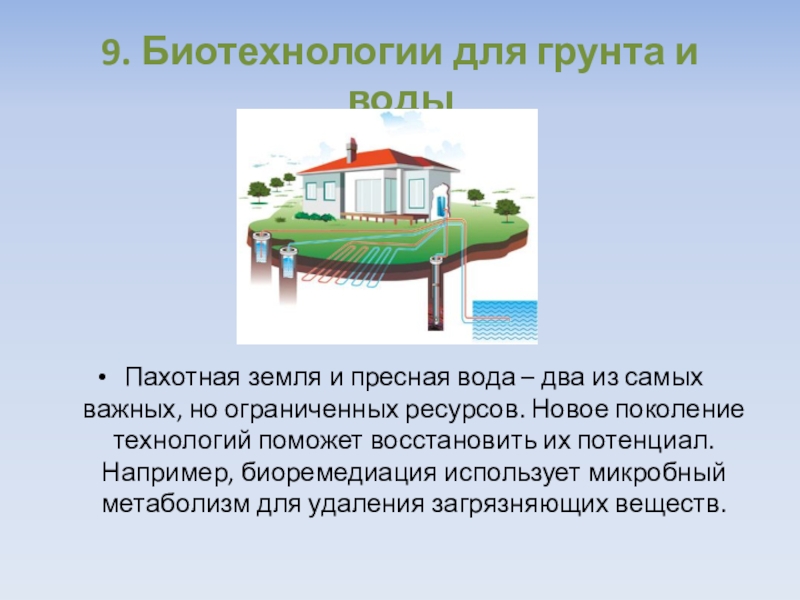 9. Биотехнологии для грунта и водыПахотная земля и пресная вода – два из самых важных, но ограниченных