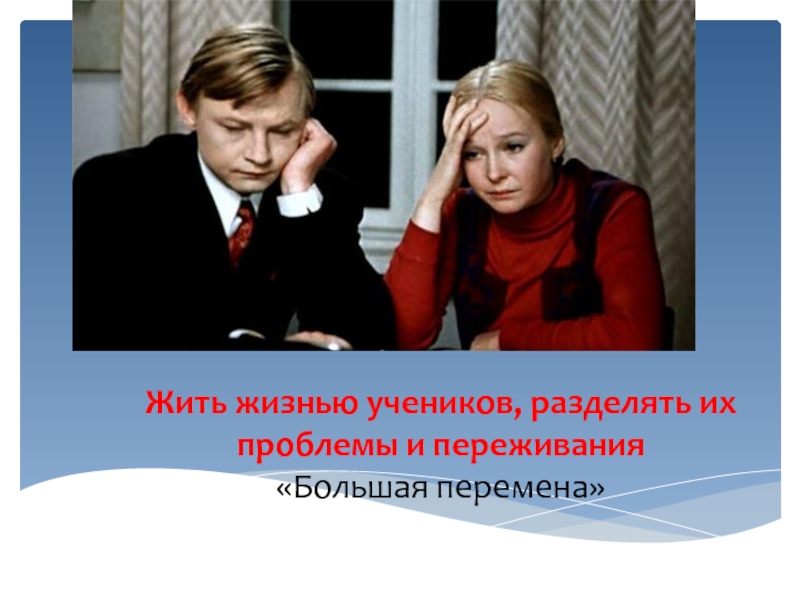Слайд 2Жить жизнью учеников, разделять их проблемы и переживания «Большая перемена»