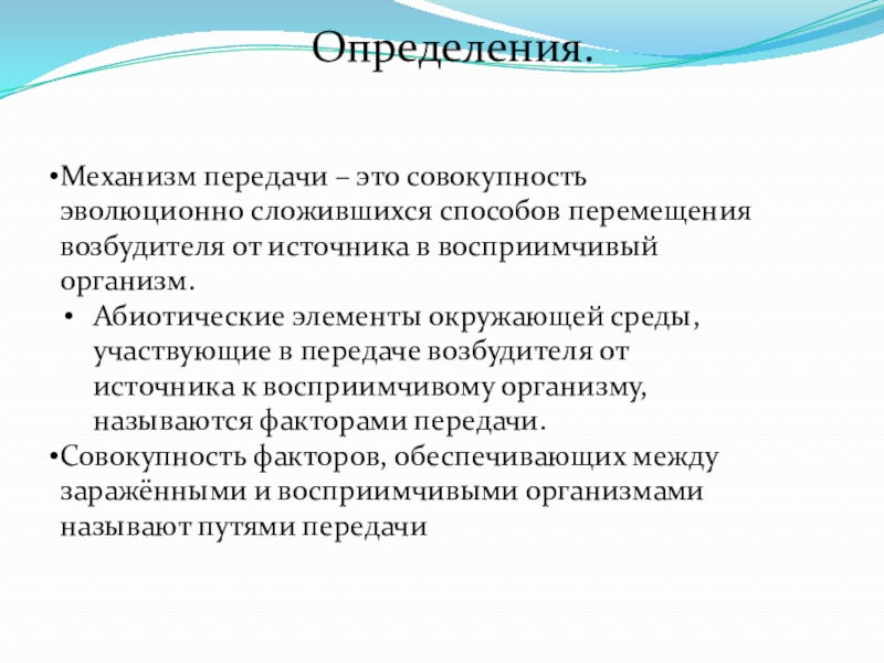 Механизм передачи – это совокупность эволюционно сложившихся способов