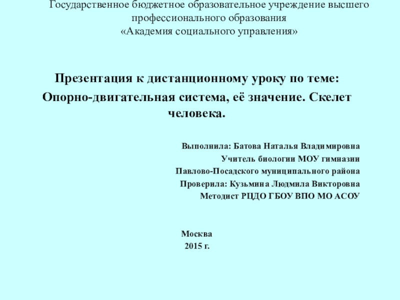 Методист РЦДО ГБОУ ВПО МО АСОУ