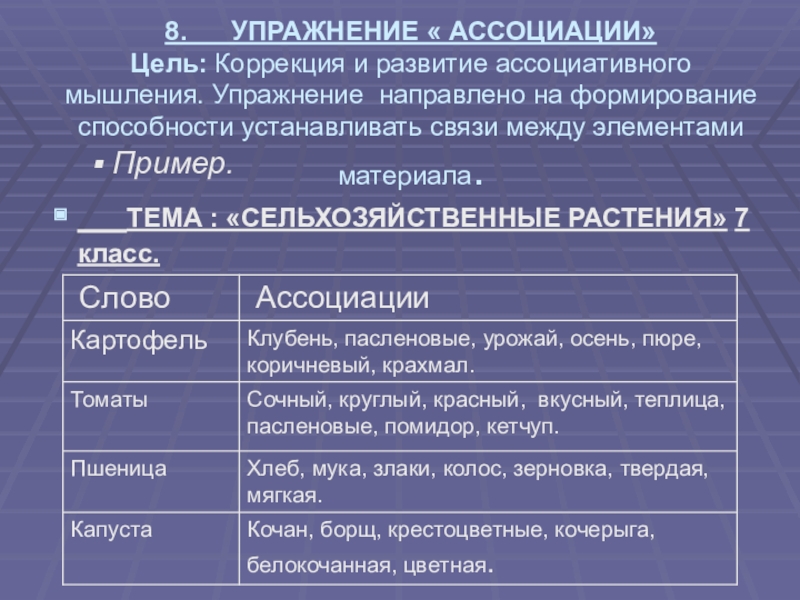 Цель: Коррекция и развитие ассоциативного мышления.