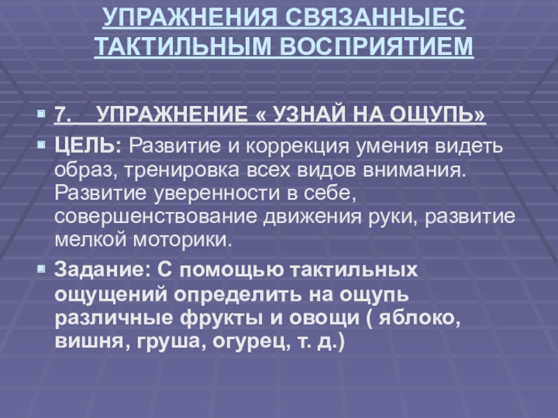 7. УПРАЖНЕНИЕ « УЗНАЙ НА ОЩУПЬ»