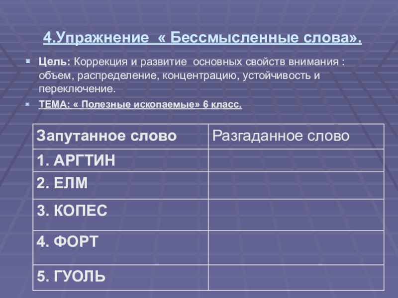 Цель: Коррекция и развитие произвольного внимания,