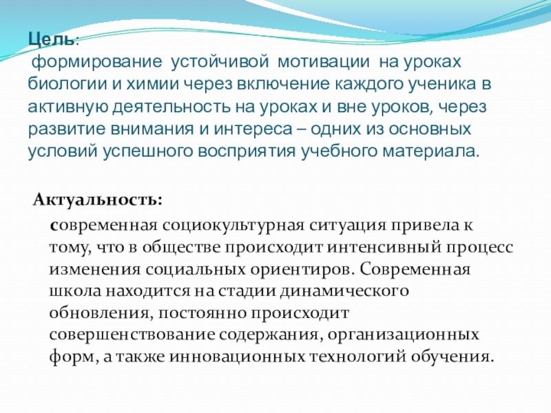 современная социокультурная ситуация привела к тому, что в обществе происходит интенсивный процесс изменения социальных ориентиров. Современная школа находится на стадии динамического обновления, постоянно происходит совершенствование содержания, организационных форм, а также инновационных технологий обучения.