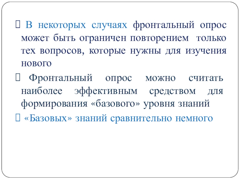 Фронтальный опрос можно считать наиболее эффективным средством для формирования «базового» уровня знаний