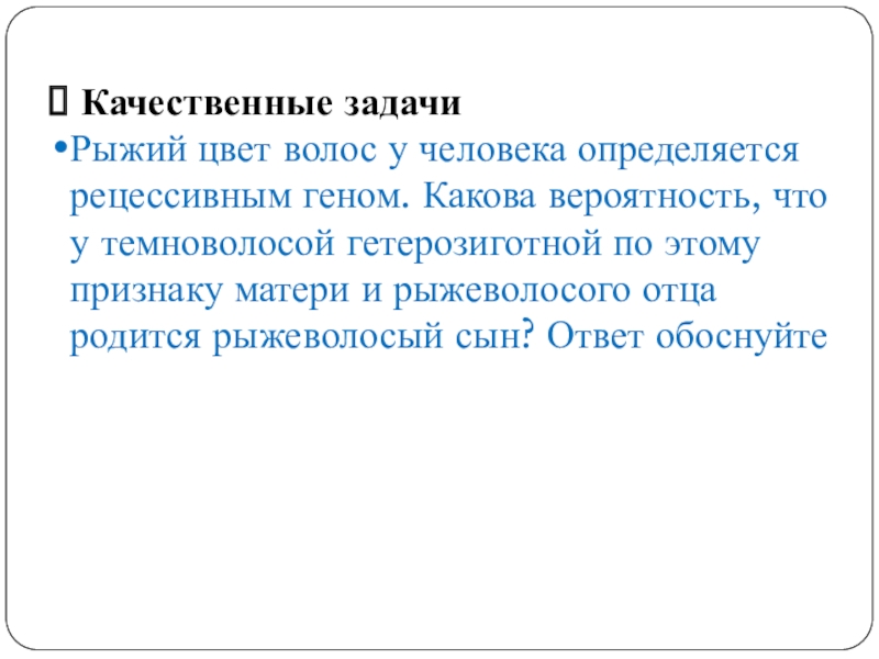 вероятность, что у темноволосой гетерозиготной по этому признаку матери и рыжеволосого отца родится рыжеволосый сын? Ответ обоснуйте