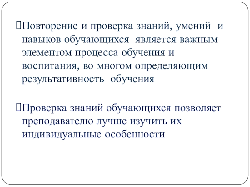Проверка знаний обучающихся позволяет преподавателю лучше изучить их индивидуальные особенности