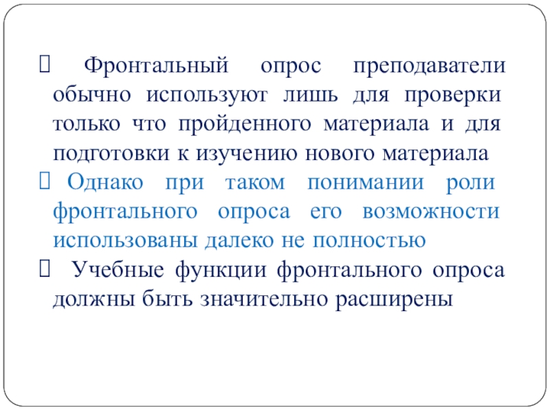 Слайд 7 Фронтальный опрос преподаватели обычно используют лишь для проверки только что