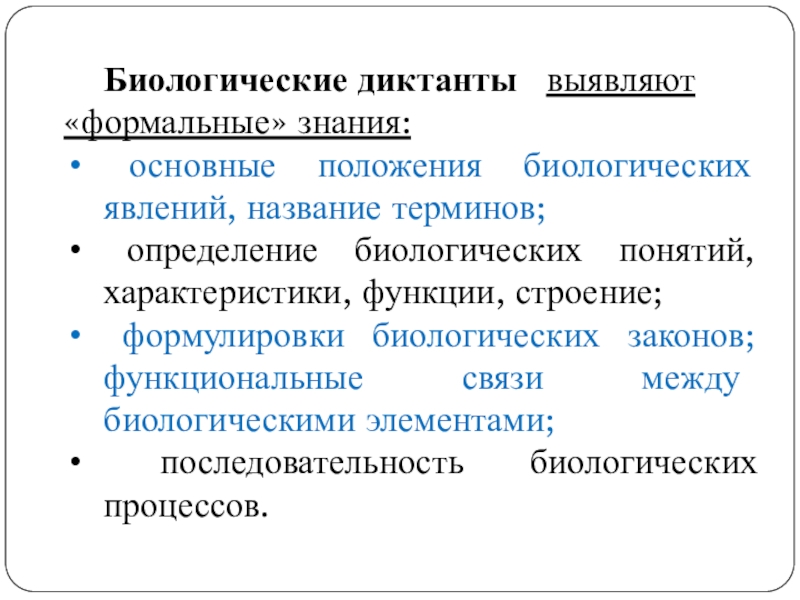 Слайд 28Биологические диктанты выявляют«формальные» знания: