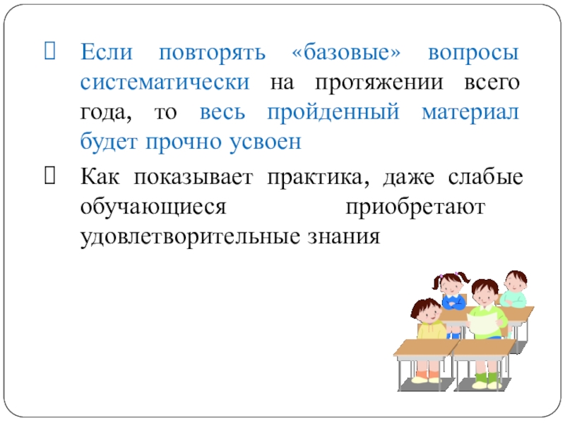 Слайд 17Если повторять «базовые» вопросы систематически на протяжении всего года, то весь