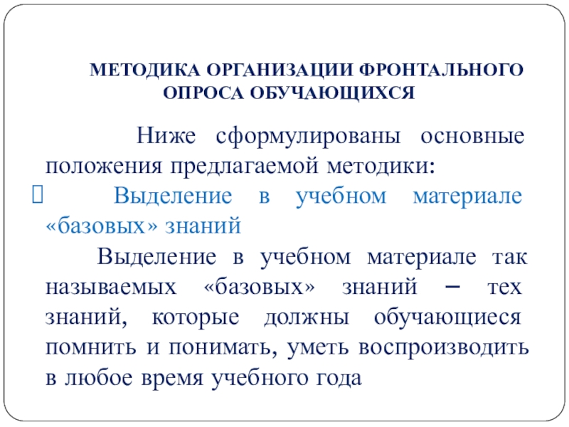 составление вопросов для фронтального опроса следует основывать на «базовых» знаниях: