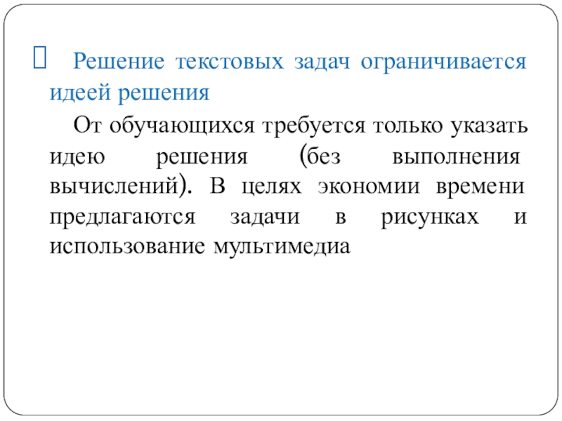 Слайд 14 Решение текстовых задач ограничивается идеей решения