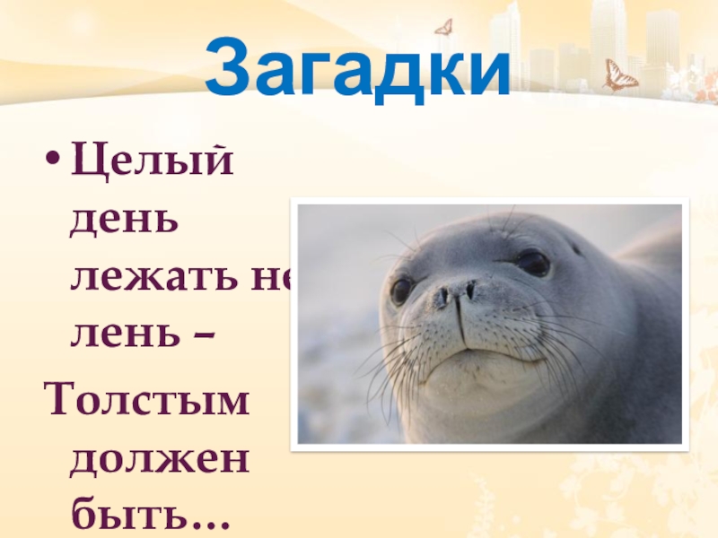 ЗагадкиЦелый день лежать не лень –Толстым должен быть…