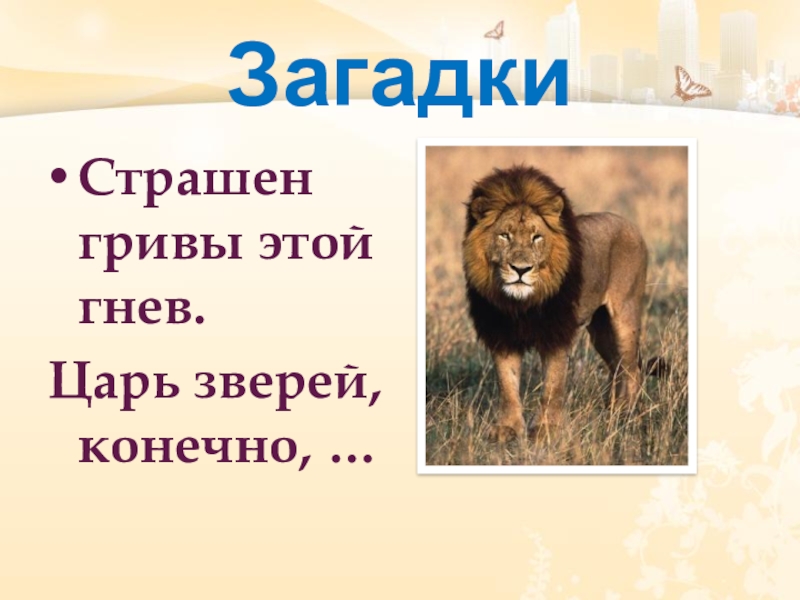 ЗагадкиСтрашен гривы этой гнев.Царь зверей, конечно, …